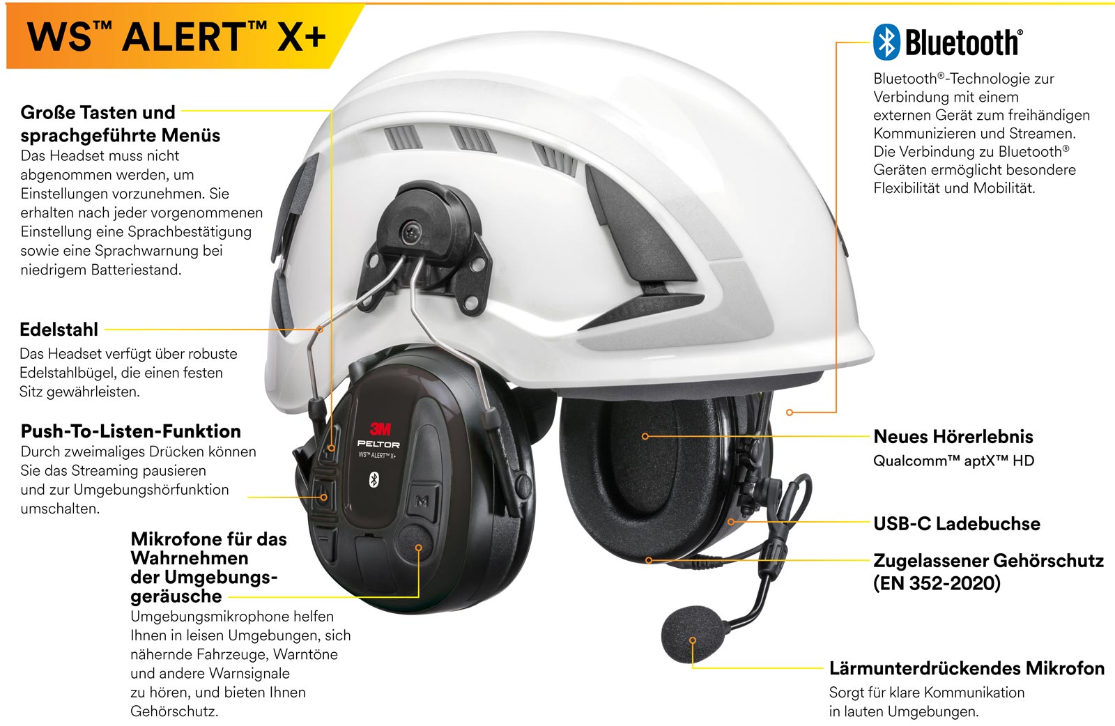 ► Hinweis: Ein Schutzhelm ist nicht Teil des Lieferumfangs. Zu diesem Headset kompatible und zertifizierte Helme finden Sie hier: 3M Arbeitsschutzhelme
